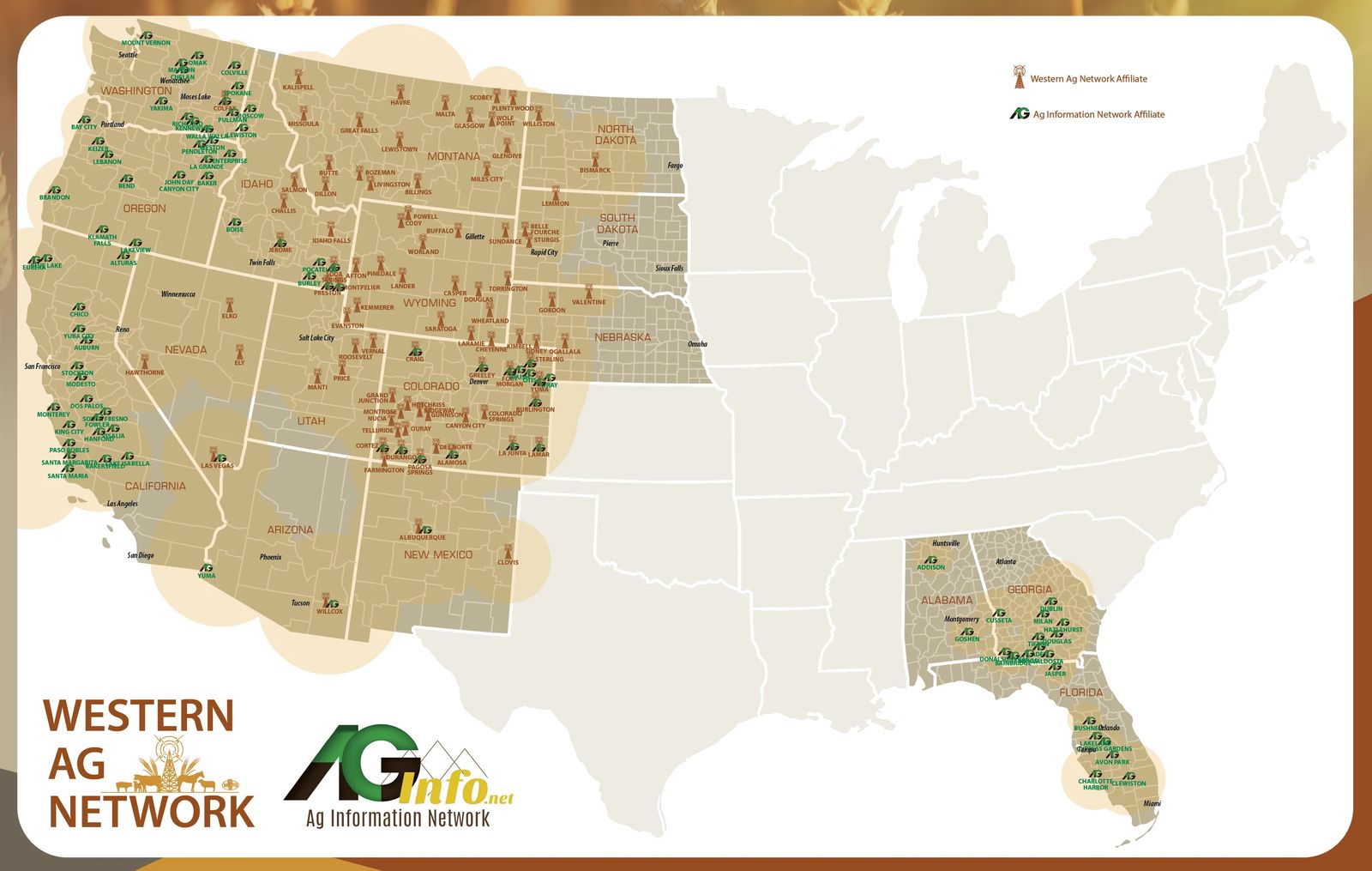 The Western Ag Network proudly delivers the latest Ag news and markets to over 111 radio stations in Colorado, Idaho, Montana, Nebraska, Nevada, New Mexico, North Dakota, South Dakota, Utah and Wyoming.