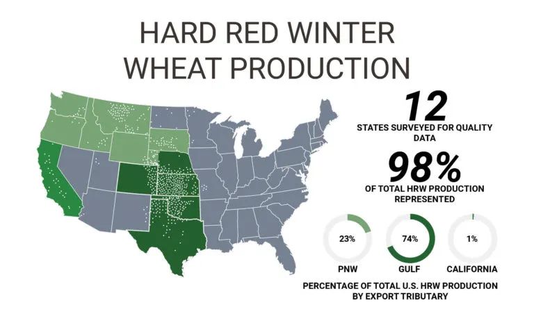 Variable growing conditions greatly influenced the 2020 U.S. hard red winter (HRW) wheat crop. In areas with favorable growing conditions, record yields resulted in lower protein but excellent test weights and kernel characteristics, while regional swings in temperature and moisture led to lower yields with higher protein. The result is a crop that has generally outstanding kernel characteristics with flour, dough and bake quality attributes equal to or better than last year and many of the 5-year averages. Overall, the 2020 HRW crop can be characterized as clean and sound with good milling and processing characteristics, providing customers with an exceptionally good range of quality and value.