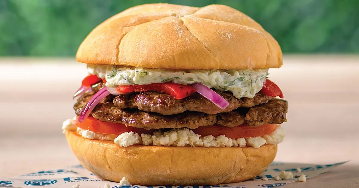 Taziki’s Mediterranean Café and the American Lamb Board (ALB) are partnering on a summer promotion to offer a new burger, made with 100% American Lamb. Taziki’s Lamb Burger is made up of two griddle-cooked, seasoned lamb patties on a toasted kaiser bun with feta cheese, sliced tomato, grilled onions and peppers and Taziki sauce.