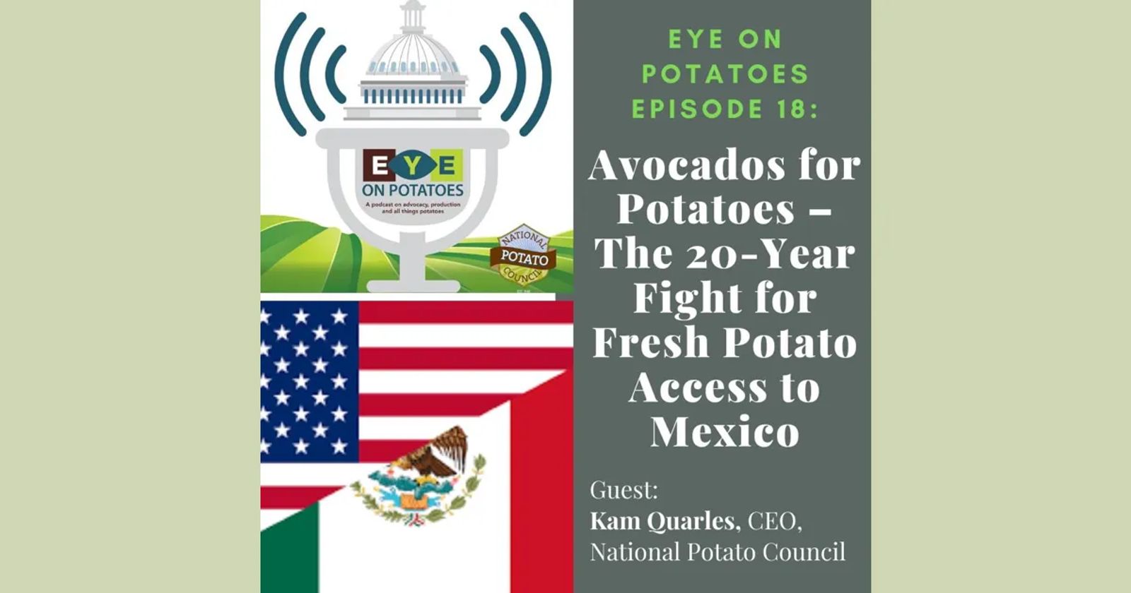 In the latest Eye on Potatoes Podcast, NPC CEO Kam Quarles discusses this long-simmering issue, which could amount to over $100 million annually, benefiting U.S. potato growers and Mexican consumers alike. Click Play to listen.