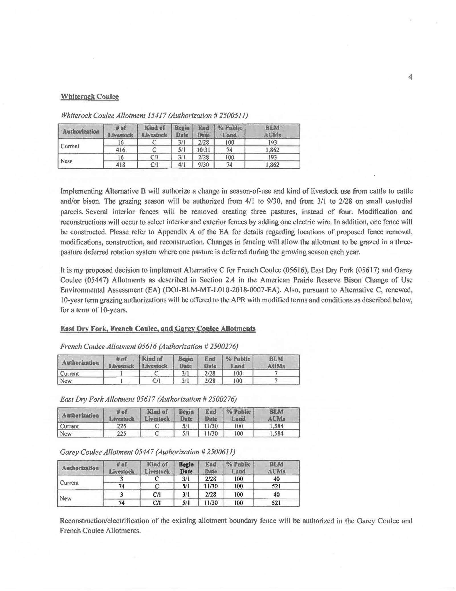 The proposed decision comprises approximately 63,065 acres of BLM administered lands and currently provides 7900 animal units.