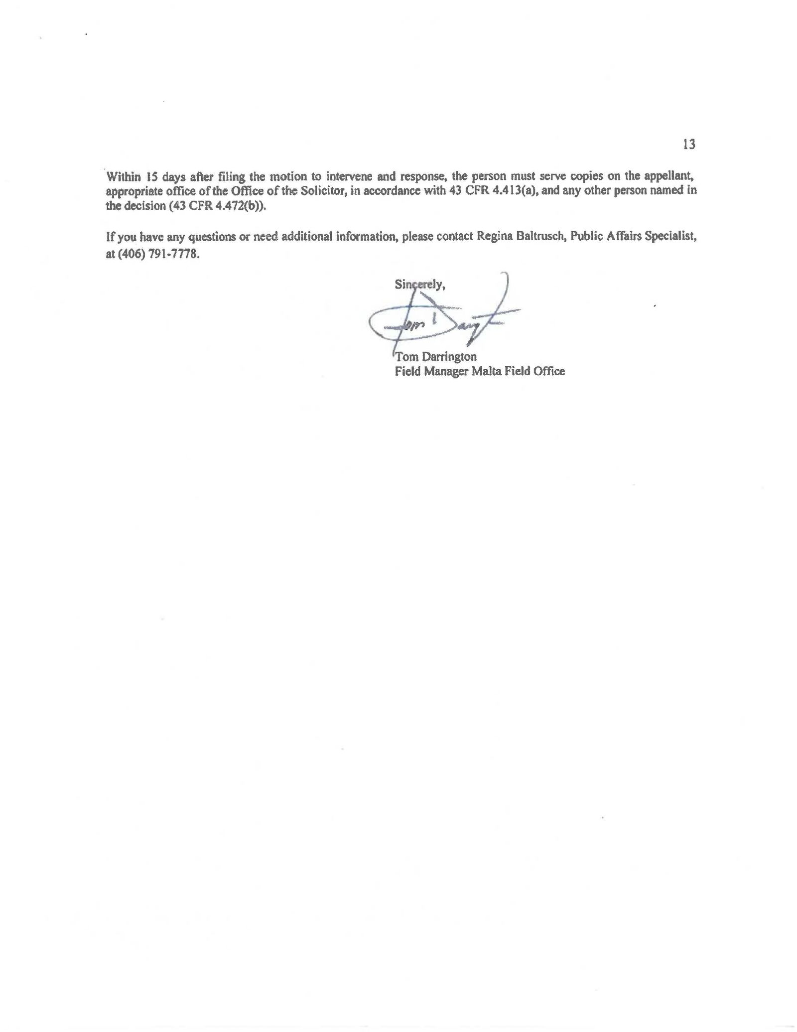 Family ranchers and community stakeholders are disappointed in the government's announcement today. The Montana Stockgrowers Association Executive Vice President Jay Bodner said the BLM has failed to listen to all the concerns of all parties and community members.