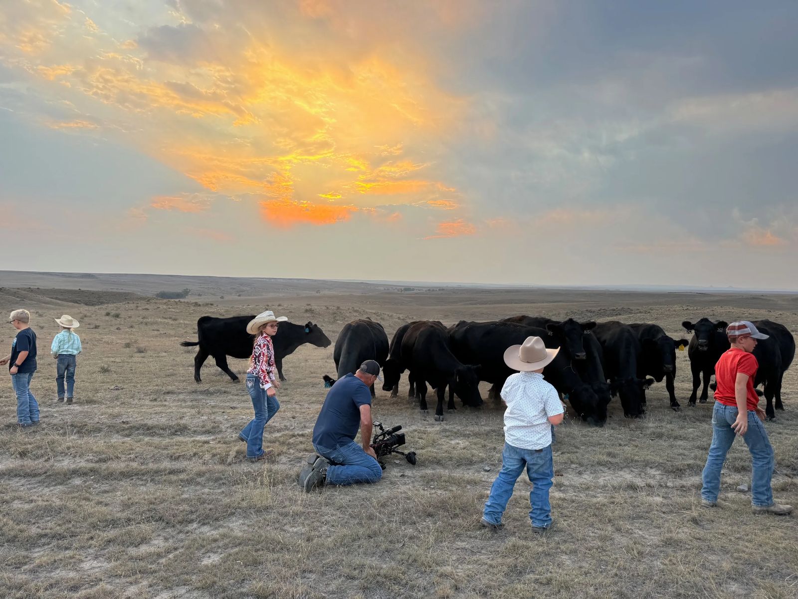 At McEndaffer Feedyard, filming included processing arriving cattle, pen riders and aerial shots of the yard. At Hettinger X7 Ranch, corn harvest was captured by ground, in the combine and grain cart tractor cab, and by air. A different October may not have allowed footage of baling alfalfa, but this one did at a field farmed by Brandon at Kroskob Farms. Parts and Labor Brewery also allowed the crew to film the hand cutting, cookings, and serving of steaks and the brewery operation. Humphrey even made the trip to Otis to film Hannah Kugler and her Prairie volleyball teammates play. Filming concluded back at the Kugler Ranch with a community barbecue.