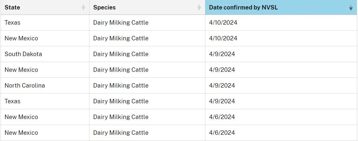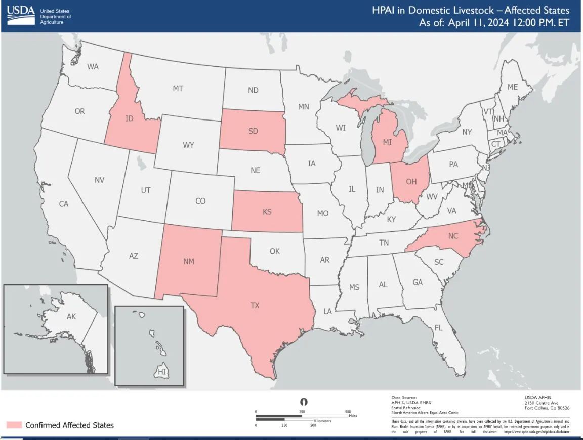 Confirmed Cases of HPAI in Domestic Livestock as of 4/7/24