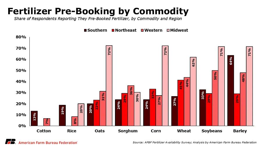 In contrast, producers in other regions are more likely to purchase fertilizer closer to application, increasing exposure to in-season price volatility during periods of market disruption. Nineteen percent of southern farmers pre-booked fertilizer this crop year. Southern producers often grow crops such as cotton, rice, soybeans, corn and peanuts that rely heavily on applied nutrients and can be particularly sensitive to changes in fertilizer costs. Pre-booking rates are similarly limited in other regions, with just 30% of farmers in the Northeast and 31% in the West securing fertilizer ahead of the season.