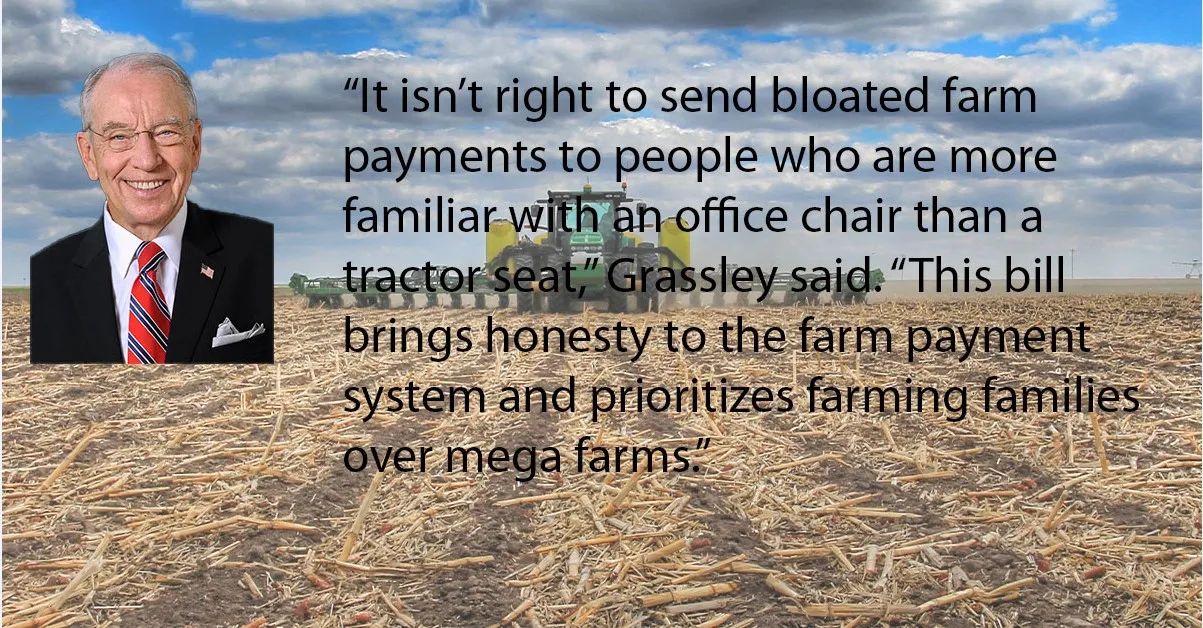 “It isn’t right to send bloated farm payments to people who are more familiar with an office chair than a tractor seat,” Grassley said. “This bill brings honesty to the farm payment system and prioritizes farming families over mega farms. Hard-earned tax dollars should only be sent to hard-working farmers – those with calluses on their hands and dirt under their fingernails.”
