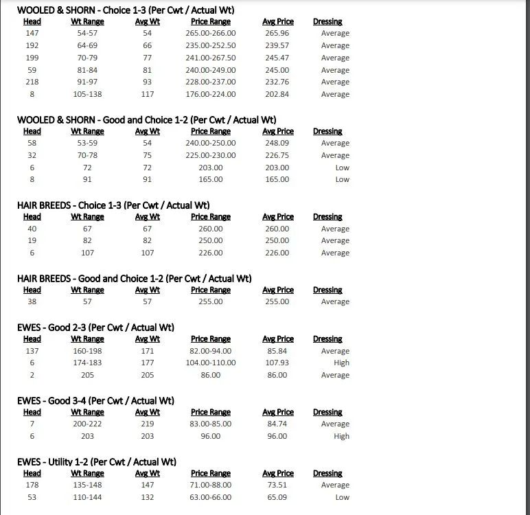 In contrast, cull ewes were insufficiently tested to determine a clear trend. The auction featured a substantial offering of goats, and the demand for them remained predominantly good to very good. Ethnic buyers were actively involved in purchasing goats for ethnic harvest, contributing to the overall strength of the market.