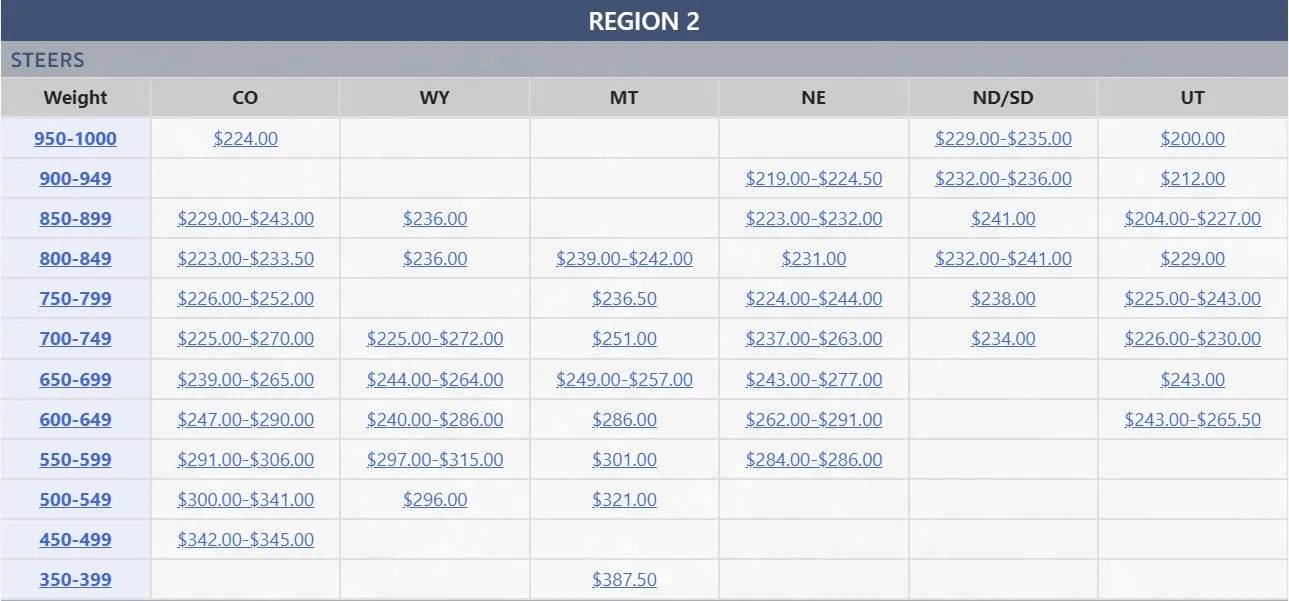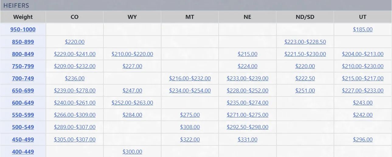 Feeder Cattle Weights: