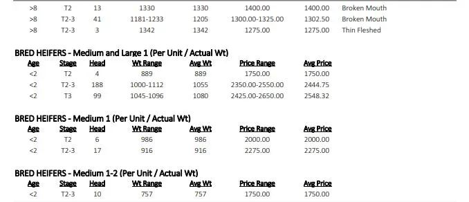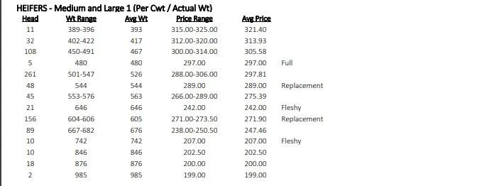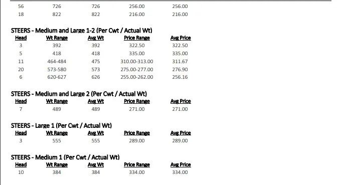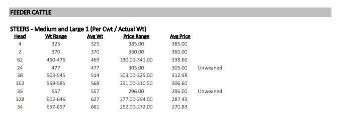 - Steers weighing 450-499 lbs saw a significant increase, selling mostly 15.00 higher, attributed to a higher quality offering.