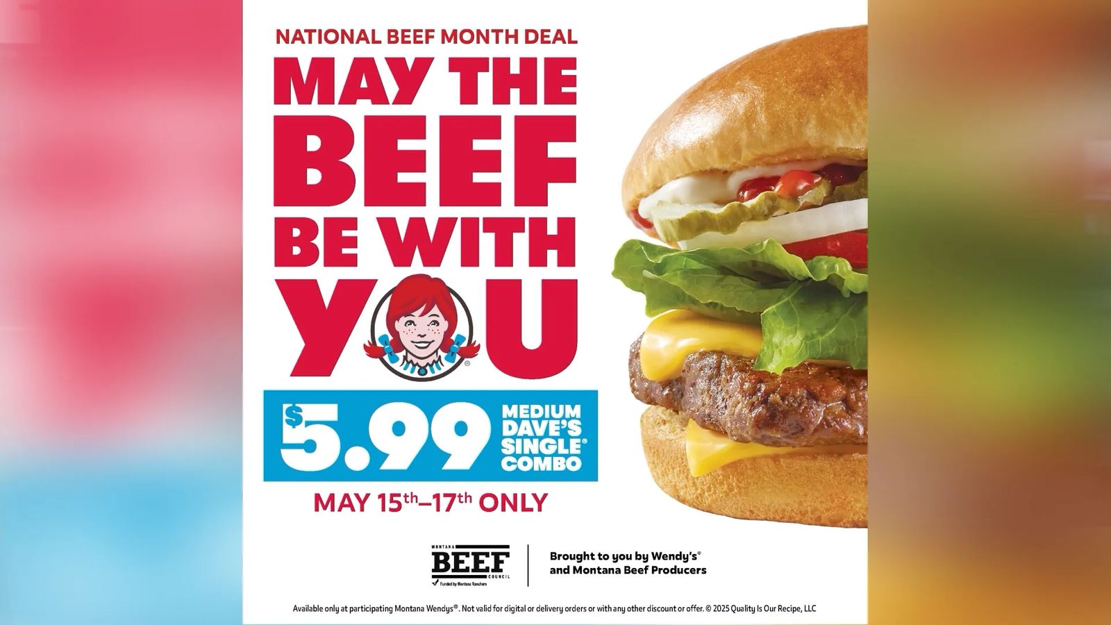 "We are very excited to celebrate May as National Beef Month" said Wenta Director of Marketing Jonna Jones. "You'll see that it's a real thing. We're not making it up. We partnered with the Beef Council again to offer a fantastic deal for our customers. This Thursday through Saturday come to any Wendy's in Montana, there are 18 total spread across the state corner to corner, and you can get a Dave's single combo size medium for $5.99.