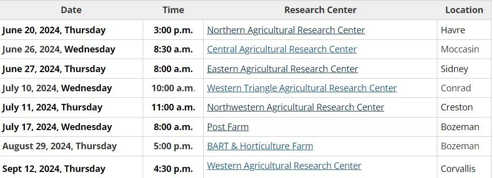Join the MSU Department of Research Centers and the Montana Agricultural Experiment Station in a celebration of statewide agricultural research. The 2024 field days will feature updates on research into livestock, pests, disease response, cropping systems and more!
