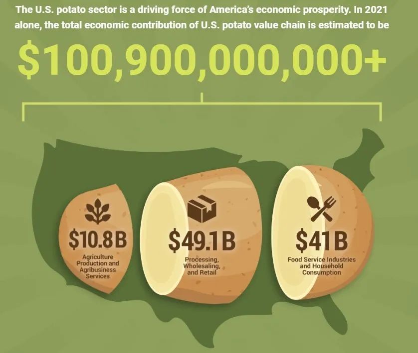 According to the report, the U.S. potato sector is a driving force of America's economic prosperity, with an estimated contribution of $100.9 billion in 2021. This contribution stems from the following direct and indirect economic activity: