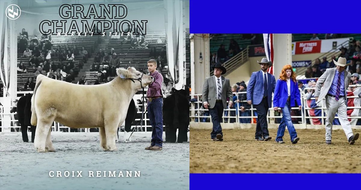 DENVER, January 17, 2024 — The Nick Reimann Memorial trophy is awarded to the exhibitor of the grand champion market steer at the National Western, the Super Bowl of livestock shows. Awarded in honor of Reimann, a South Dakota cattleman who was killed in an airplane crash in 2014, the trophy is presented by Reimann's parents, widow, Kyrsten, and two children. This year, the family awarded the trophy to Reimann's son, Croix, after he won the top honor.