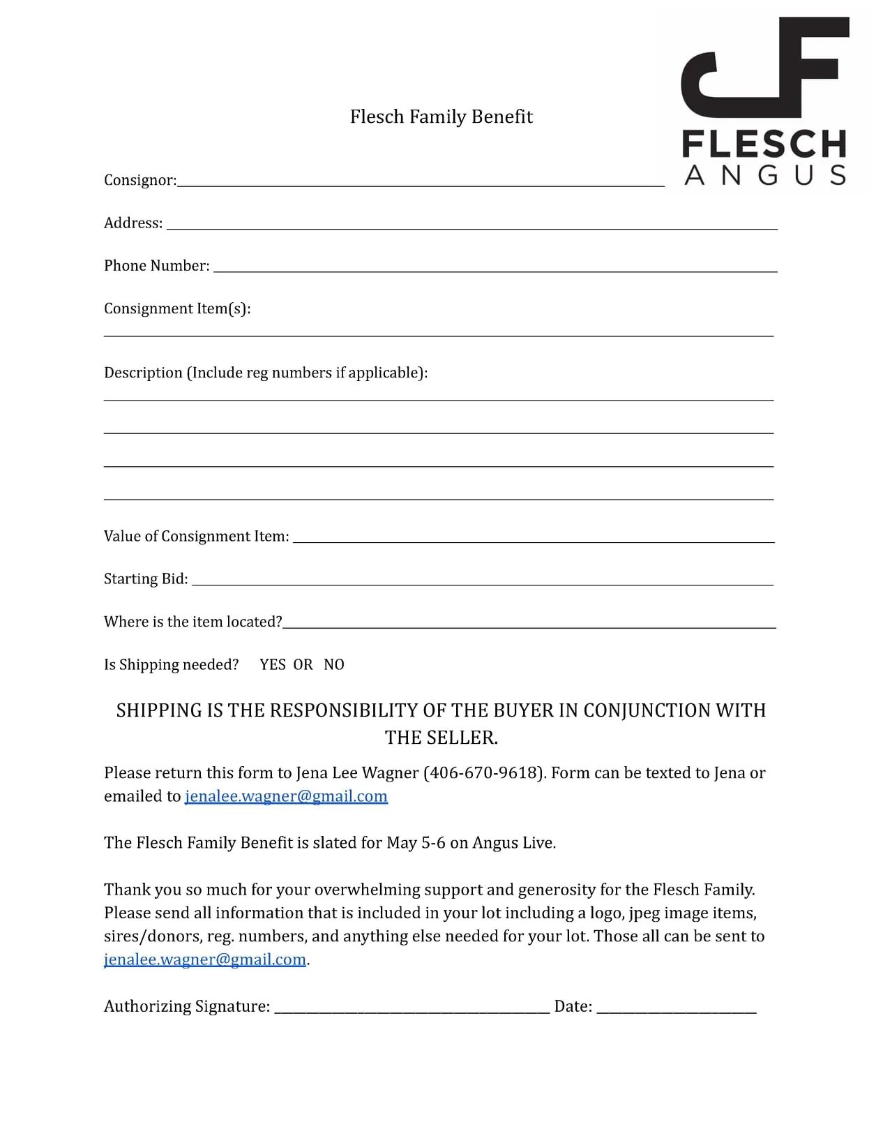 Please make checks payable to: Flesch Family Benefit.