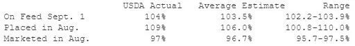 "The total number of cattle on feed was 11.4 million head, up 4% from last year and is the highest Sep. 1 inventory since the series began back in 1996. The total number of placements stole the report's attention, though, being upward of 9% higher than a year ago, totaling 2.06 million head.