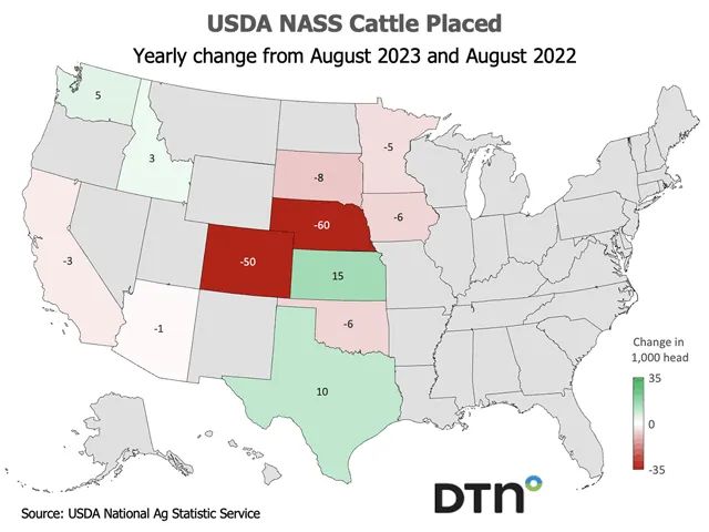 "The big question in Friday's report was: Where will the August placement data land, exactly? With analysts having a wide spread in their estimates, (ranging anywhere from 92.0% to 98.1% compared to a year ago) there was a mixed consensus on what placement data would be. But when looking through the report thoroughly, it's evident that there were fewer cattle placed in August, as the market simply has fewer cattle to offer, especially following the big placements seen in June and July. The only states that saw an increase in placements compared to a year ago were Idaho (up 7%), Kansas (up 3%), Texas (up 2%) and Washington (up 13%). And it was also interesting to note that when looking at the placement data from a weight group perspective, not one single division in Friday's report surpassed that of a year ago. That again emphasizes the fact that there are simply fewer cattle in today's market than there were a year ago.
