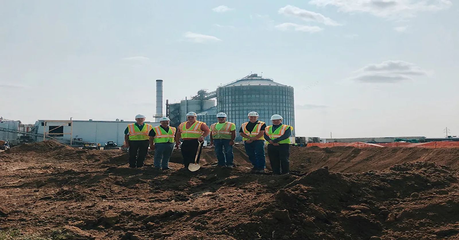 Ground was broken for the new bin on September 14, 2020, at Golden Grain Energy, an ethanol production plant in Mason City, Iowa. Representatives from Sukup Manufacturing attended, as well as representatives from partner organizations Buresh Building Systems Inc., a Sukup dealer located in Hampton, Iowa, and construction partner McGough Construction out of St. Paul, Minnesota.