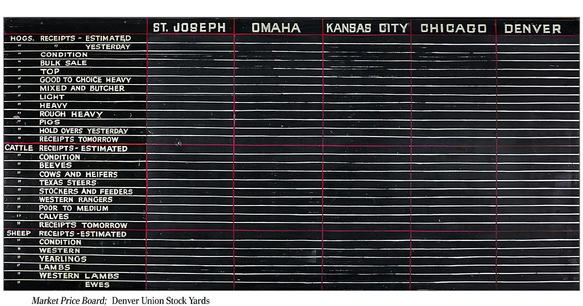 The CCA predates the state of Colorado and seven of its members changed the history of the cattle industry when in 1881 they founded the Denver Union Stock Yard Company. The first cattle arrived in the Stock Yards in 1886 by rail via one of the three rail lines that ran through the Yards. By 1905, the Denver Union Stock Yards were selling 239,000 head of cattle, 115,000 head of hogs, 306,000 lambs, and 22,000 horses annually. In 1908, the Denver Union Stockyards Company sold $2.8 million of livestock, according to a 1909 edition of the Denver Municipal Facts. That year, the daily yard capacity was 30,000 cattle, 30,000 sheep, 20,000 hogs, and 2,000 horses and mules. Fat cattle sold for an average of $40 per head; calves $8; sheep $4; hogs $10; and horses and mules $30. The total number of fat cattle sold that year was 395,164 head. It established Denver as a major hub and a town built on the shoulders of the cattle business.