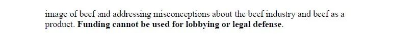 Program funding will be at the discretion of the Montana Beef Council. Programs to be considered include, but not limited to: promote Montana beef and beef products, enhance the image of Montana's beef industry, funding beef issues management, youth education, support beef-to-school efforts, production research, education, expand domestic and international beef markets, enhance current Montana Beef Council projects and fund outside programs elevating the public image of beef and addressing misconceptions about the beef industry and beef as a product. Funding cannot be used for lobbying or legal defense.