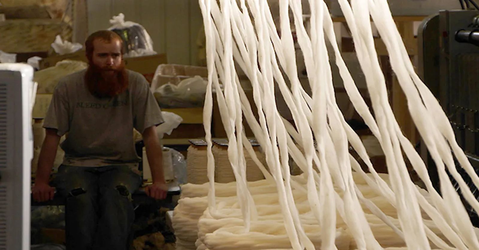 The web of fiber requires more processing through pin-drafting to make the fibers parallel and create a smoother yarn. After pin-drafting, it moves to spinning, which is where the fibers are pulled apart and added a twist to make a spun yarn, said Hosteler.