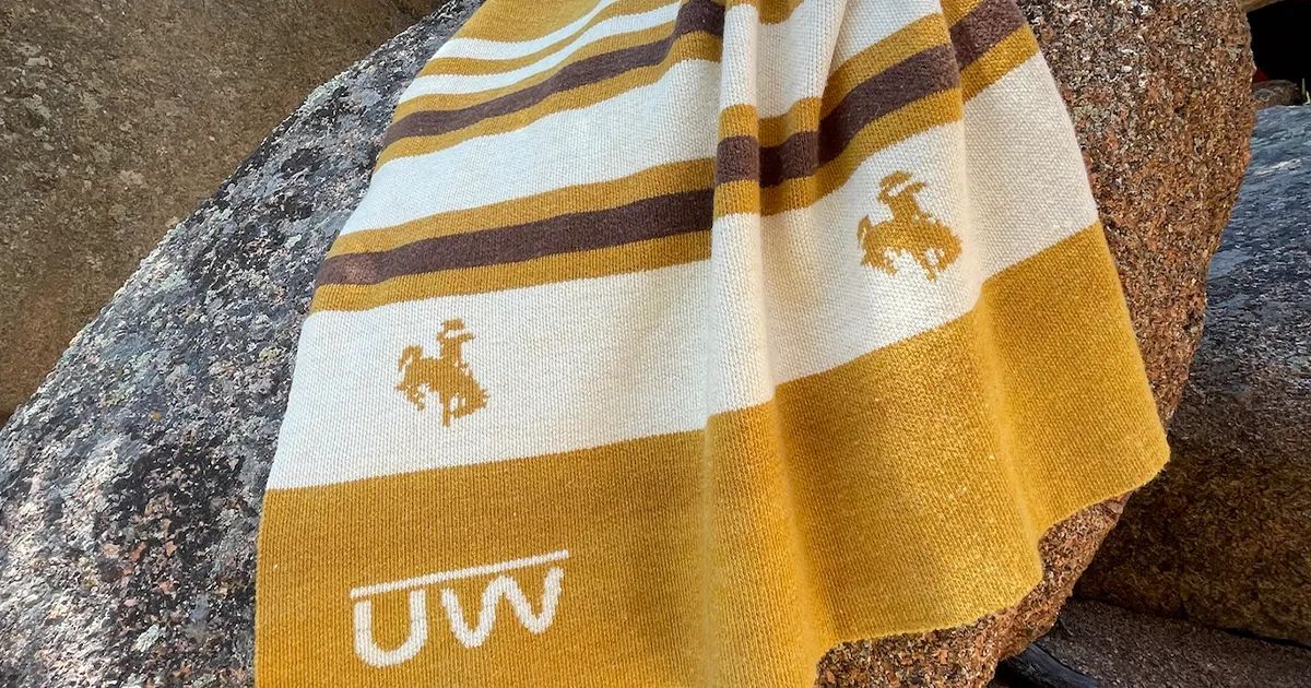The blankets are made with wool from the University of Wyoming’s sheep flock in Laramie and manufactured at the Mountain Meadow Wool Mill in Buffalo.